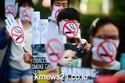 ▲ 중국에서 금연에 대한 대학생 시위가 벌어졌다. ⓒAFP중국 동부 장쑤성의 양주에서 대학생 시위대가 흡연자들에게 비흡연에 대한 이익을 각성시키주기 위한 시위를 벌이고 있다.