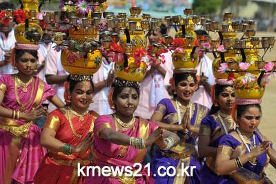 ▲ 인도의 하이데라바드 건국 기념 행사 ⓒAFP인도 세쿤데라바드의 새로운 도시인 하이데라바드의 건국을 기념하는 공연이 진행되고 있다.