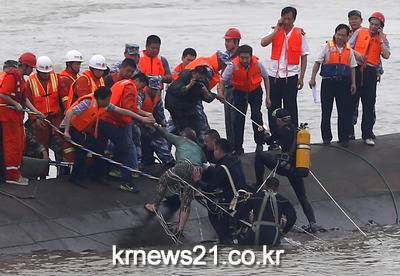 ▲ 중국 양쯔강에서 여객선이 침몰해 구조 작업이 진행되고 있다. ⓒAFP