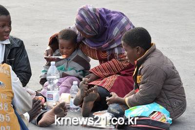▲ 이탈리아로 넘어온 아프리카 이주민들이 허기를 채우고 있다. ⓒAFP이탈리아 남부 시칠리아 해안의 카타니아 항구에서 아프리카 불법 이주자들이 도착해 허기를 채우고 있다.