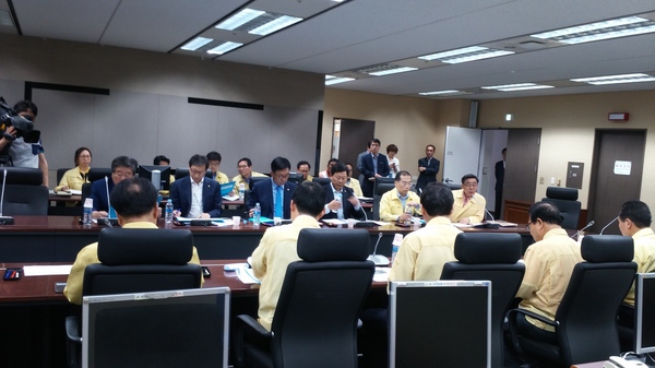 국회 보건복지위원회(위원장 김춘진)는 9일 전북도청 재난대책상황실에서 김성주 의원(보건복지위 새정치민주연합 간사)를 비롯 질환 발생 지역구 의원인 최규성(김제 완주) 의원, 강동원 의원(남원 순창), 송하진 도지사와 이건식 김제시장, 황숙주 순창군수 등이 참석한 가운데 대책회의를 갖고 메르스 확산 방지에 자치단체와 함께 총력을 기울여 나가기로 했다. 김 위원장은 “정부의 미흡한 대응에도 불구하고 전북의 경우 초기 대응에 신속히 잘 대처하고 있어 그나마 다행이다”며 “국가의 지원이 미흡하거나 지연되는 사항에 대해서는 현장에서 가장 잘 알기 때문에 그때그때 연락을 주면 즉시 관련 부처에 전달, 곧바로 시행될 수 있도록 적극 지원하겠다”고 밝혔다.