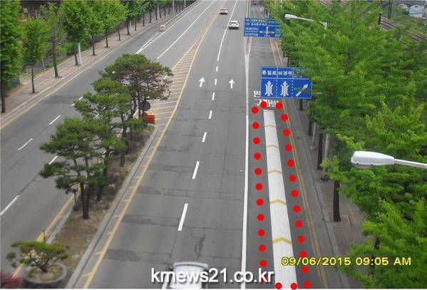 이에 혼돈을 일으키지 않도록 200m 전부터 3차로에 원당역 방향임을 알리는 유도선과 노면글씨를, 차로이정표가 잘 보이고 쉽게 알수 있도록 가로수 가지치기와 표기를 단순화 했으며 또한 야간에 표지석과 충돌을 예방하기 위해 태양열 경광등, 표지병, 시선유도봉을 보강설치 하였다.