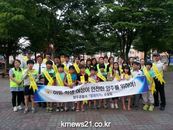 양주경찰서(경찰서장 전병용)에서는 2015. 6. 9. 19:00경 양주시 광적면 가납리 일대에서 4대 사회악 근절 및 학교 밖 청소년 선도를 위하여 경찰, 어머니·학부모폴리스, 학생 등 지역주민 50여명이 함께 참여하여 협력 치안활동인『등대지기』활동을 실시하였다.
