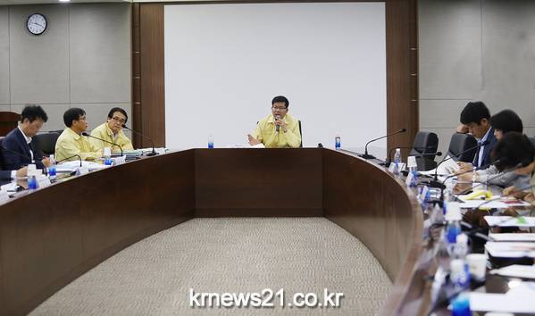 ▲ 국회특위국회 메르스 특별대책위원회가 6월 15일 평택시청을 방문했다. 신상진 위원장과 13명의 위원이 참석한 이날 회의에서 평택시는 메르스 현황 보고와 함께 현재 평택시의 애로사항과 건의사항을 전달했다.