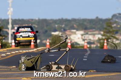 ▲ 브라질 대통령 궁 앞 도로에 폭발물로 추정되는 3개의 물체가 포착돼 조사 중이다. ⓒAFP브라질 대통령의 '플라나우토 궁' 앞에 폭탄을 포함한 의심스러운 물체가 경찰에 포착되었다.