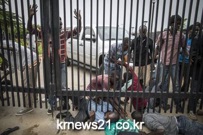 ▲ 부룬디 대통령 3선 반대 시위를 제재하자 美 대사관을 난입하고 있다. ⓒAFP부룬디의 미국 대사관 앞에서 학생들이 굳게 닫힌 문을 통해 대사관으로 난입 시도를 하고 있다.