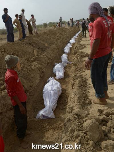 파키스탄 카라치에서 폭염으로 인해 1,233명이 숨져 장례식이 진행되고 있다.