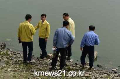 김포시 유영록 시장은 6월30일 오전 김포 고촌읍 전호리 한강유역의 녹조발생과 관련하여 아라천 갑문에서 한강변을 따라 긴급 현장을 점검을 실시했다.