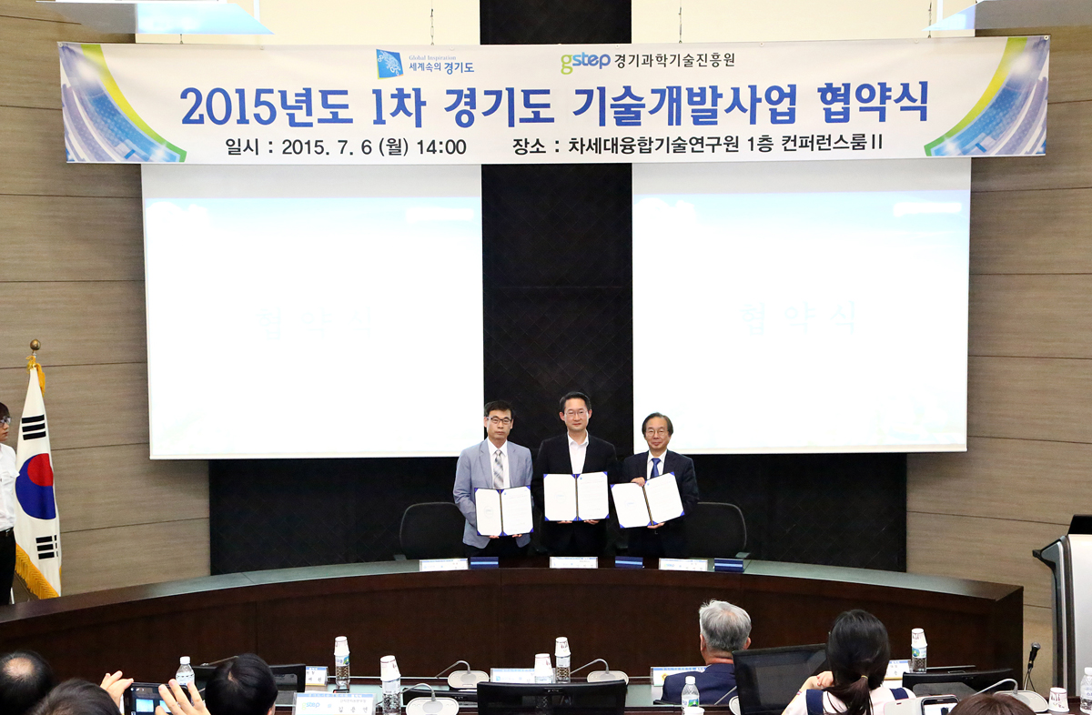 경기도와 경기과학기술진흥원(원장 곽재원)은 6일(월) 광교테크노밸리 차세대융합기술원 1층 컨퍼런스룸에서 2015년도 제1차 경기도 기술개발사업에 선정된 28개 기업과 협약을 체결하고 본격적인 기술개발에 착수한다고 밝혔다.
