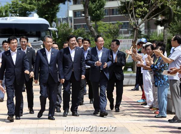 ▲ 만인의총 앞에서 정종섭 행자부장관을 환영하는 남원시민들