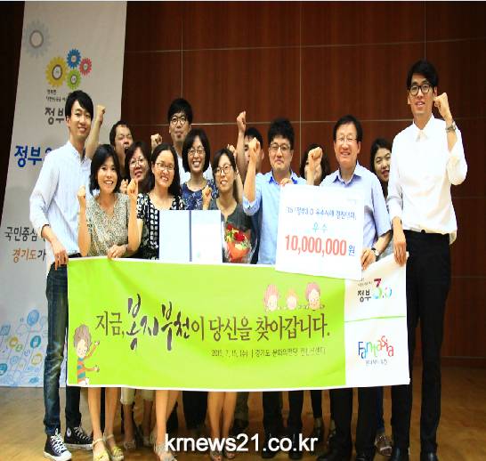 부천시는 지난 15일 경기도 문화의 전당(수원)에서 진행된 ‘ 경기도 정부3.0 우수사례 경진대회’에서 ‘찾아가는 원스톱 복지패키지’가 우수상에 선정되어 경기도지사 기관상을 수상했다.