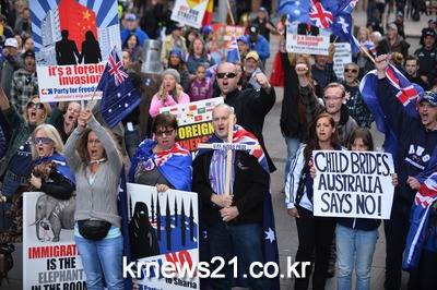▲ 호주 시드니에서 이슬람반대 시위가 벌어졌다. ⓒAFP호주 시드니에서 수백명의 시민들이 "호주를 되찾자"라는 팻말을 들고 이슬람반대 시위를 벌이고 있다.
