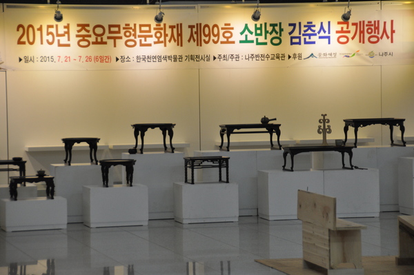 전통 나주반 기능을 전승하고 있는 국가중요무형문화재 제99호 소반장 기능보유자인 김춘식 선생의 공개행사가 7월 21일부터 26일까지 6.일간 한국천연염색박물관(나주시 다시면 소재)에서 펼쳐진다.