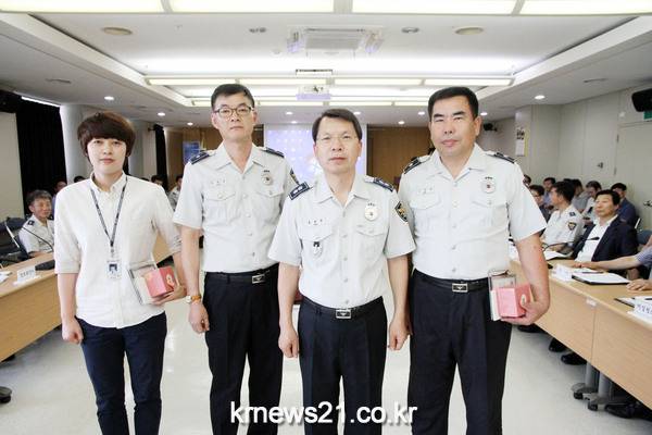 ▲ 경찰청금일 포상에는 부안경찰서 순경 이다혜의 “교통사고예방순찰중 저체온증으로 손발이 굳어진 주민을 응급처치한 천사의 손길이” 영예의 최우수상을 수상하였으며, 경비교통과 경위 조동옥의 ”stop!! 메리야스!!‘와 군산경찰서 경위 김성대의 “ 김 순경 힘좀 써봐“가 우수상을 수상하였다.