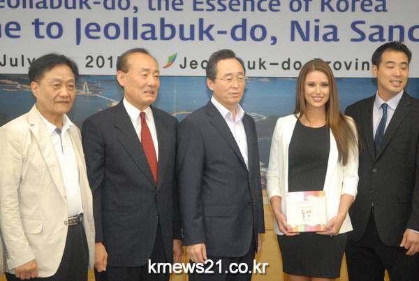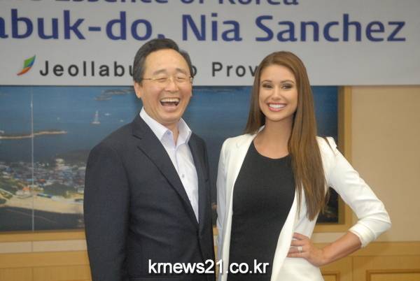 태권미인“니아 산체스” ‘17년 세계태권도선수권대회 홍보 적극 앞장선다 송하진 전라북도 지사는 28일(화) 접견실에서 ‘14년 미스 USA 1위 “니아 산체스”를 면담하고 ’17년 세계태권도선수권대회의 성공개최를 위해서는 적극적인 홍보가 필요하다며 산체스에게 세계태권도선수권대회의 홍보지원을 제안하였고 산체스도 대회홍보에 적극 앞장서기로 하였다.