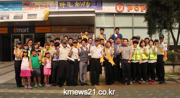 광주경찰서(강도희 서장)는, 6일 오후, 이마트 직원과 협력단체 등 50여명이 참여한 가운데 폭염 속에서 마트를 방문한 고객을 대상으로 전단지 등 홍보물을 배포하며 ‘전화금융사기 예방’에 구슬땀을 흘렸다.