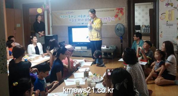 25일 개강한 1기를 포함해 총 30가족이 참여하는 이번 교육은, 30~40대 직장에 다니는 부모들이 저녁시간대에 가족 간 이해와 소통 등을 주제로 강의를 듣는 것. 신창동 주민자치위원회의 광산구 ‘오순도순 마을공모사업’ 공모 선정에 따른 이번 교육은 10월 29일까지 총 9회 진행된다.