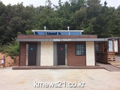 김포시는 지난 2일 문수산 청룡회관 등산로 입구에 설치되어 있던 자연발효식 공중화장실을 철거하고 세척, 음향, 전기 기능 등이 반영된 수세식 남‧여공중화장실로 새롭게 단장하였다.