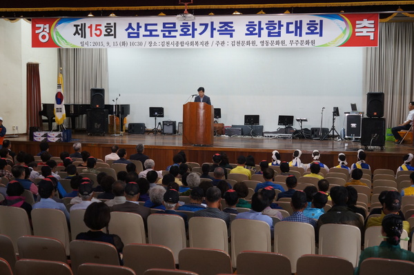 경북 김천, 전북 무주, 충북 영동이 함께하는 제15회 삼도문화가족 화합대회가 15일 김천문화원 주관으로 김천시종합사회복지관 대강당에서 개최되었다. 삼도문화가족 화합대회는 인접한 시군간의 정기적인 교류로 지역간 화합과 문화발전을 도모하기 위해 마련된 행사로 매년 3개 시군이 차례로 행사를 개최하고 있다. 삼도 주민 200여명이 참여한 이날 행사는 3개 시군의 문화원 공연단의 장기자랑과 초청공연, 부항댐 및 혁신도시 견학순으로 진행되었다. 이날 환영사를 전한 서정하 안전행정국장은“문화와 예술을 바탕으로 한 3개 시군간 정기적인 교류로 지역간 화합과 소통의 계기가 되었으면 한다”고 전했다. 한편, 오는 10월 10일에는 경북 김천, 전북 무주, 충복 영동의 접경인 삼도봉(三道峰)에서 3개 시․군의 번영과 안녕을 기리는 삼도봉 만남의 날 행사가 김천문화원 주관으로 개최될 예정이다.
