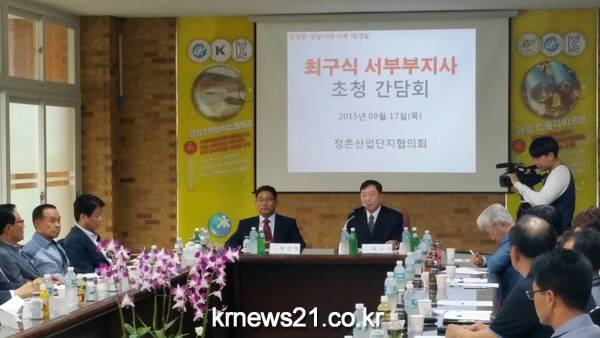 이날 간담회에는 최구식 경상남도 서부부지사를 비롯하여 방만혁 정촌산단협의회 회장과 정촌산업단지 41개 기업대표들이 참석했다.