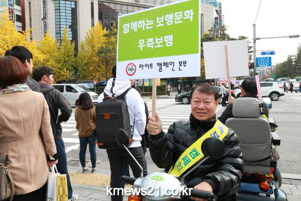 이번 캠페인을 통해 우측보행에 대한 인식이 확산되고 더불어 11월11일은 지체장애인의 날, 보행자의 날로 교통약자를 생각할 수 있는 시간이 시민들에게 전달됐다.
