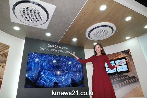 시스템에어컨 실내기로는 세계 최초로 독특한 원형 구조로 조형미를 극대화한 삼성 ‘360 카세트’도 관람객들의 눈길을 끌었다.