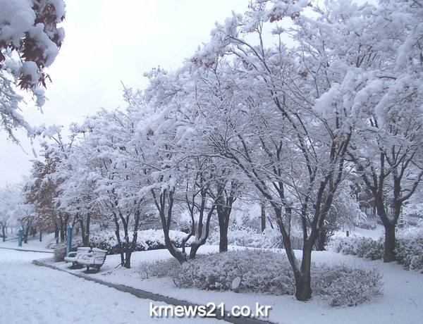 지금까지 향로봉에 약 10cm 가량의 눈이 쌓였다.
