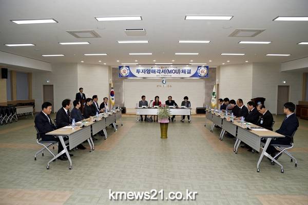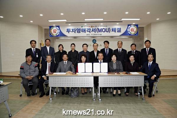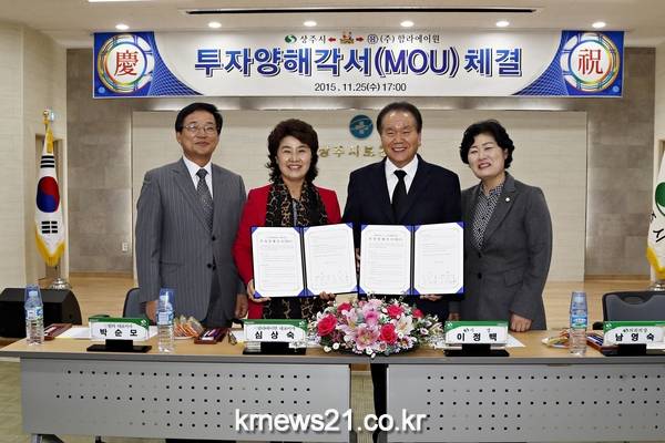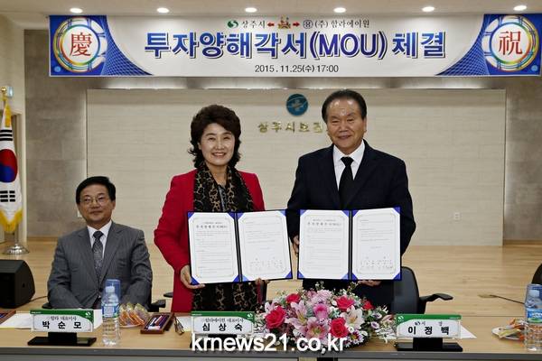 상주시와 ㈜함라에이원은 11월 25일 보건소 3층 회의실에서 모서면 지산리 일원에 지붕재(아스팔트슁글, 금속기와, 방수시트) 공장 건립을 위한 투자양해각서를 체결했다.이번 MOU 체결을 계기로 공장이 본격 가동되면 일자리 창출과 지방세수 증대, 인구증가, 소득증대 등 지역경제 활성화에도 기여할 것으로 보인다.