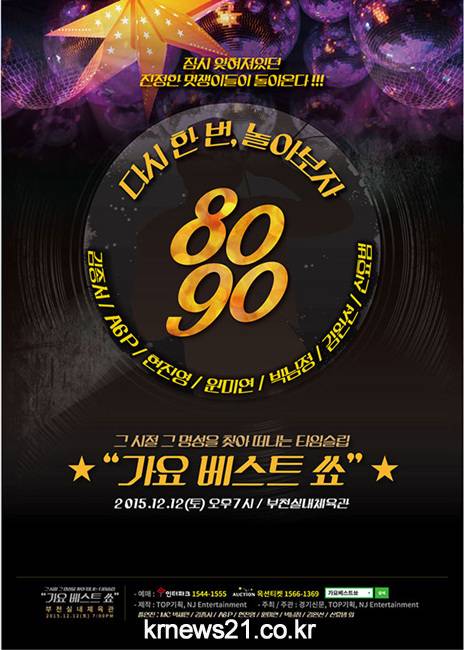 2015년 연말을 맞이하여 콘서트 ‘가요베스트쑈’가 12월 12일(토) 오후 7시 부천실내체육관에서 개최된다.