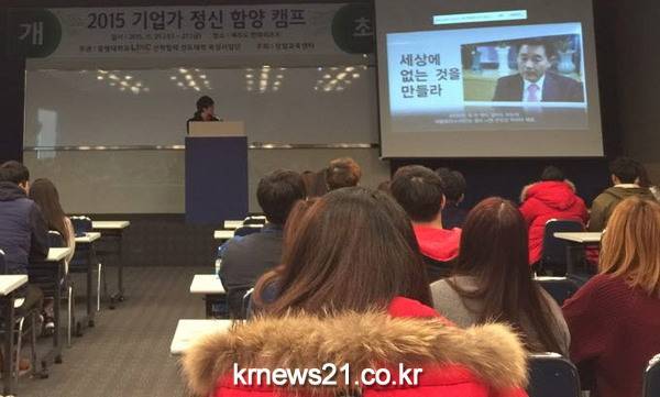 이날 항만물류시스템학과 1학년 심관우 학생은 ‘세상에 없는 것을 만들라’라는 제목의 우리나라의 모 글로벌기업 CEO의 특강 동영상을 보여주며 “창의적 마인드를 잘 보여주는 이 분의 메시지에 큰 감명을 받았다”면서 “향후 창업동아리 활동의 롤모델로 삼아 최선을 다하겠다”고 밝혔다.