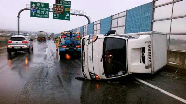 이날 11월 26일 13시경 호남고속도로 정읍시 입암면 소재에서 눈길에 미끄러져 탑차가 전복된 사고도 있었다.