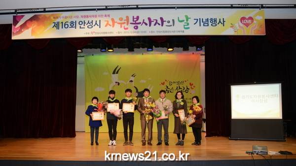 안성시자원봉사센터(센터장 신수철)는 12월 4일 안성시립도서관 다목적홀에서 시민들의 등불이 되어 나눔을 실천한 자원봉사자들을 위한 축제의 한마당으로 ‘제16회 안성시자원봉사자의 날’ 기념행사를 개최했다.