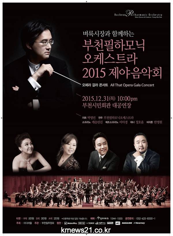 미디어윌그룹(회장 주원석)이 주최하는 ‘부천필하모닉오케스트라 2015 제야음악회’ 무대가 오는 12월 31일(목) 부천시민회관 대공연장에서 열린다.