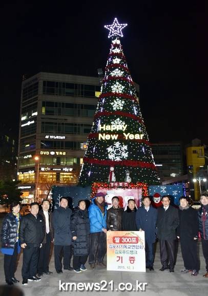 김포기독교연합회는 성탄메세지를 통해 “빛나는 성탄 트리가 시민의 마음에 따뜻한 희망이 되길 바란다.”고 전했다. 점등식에 이어 어렵고 소외된 이웃을 위해 써 달라며 쌀300포를 김포푸드뱅크에 기탁했다.