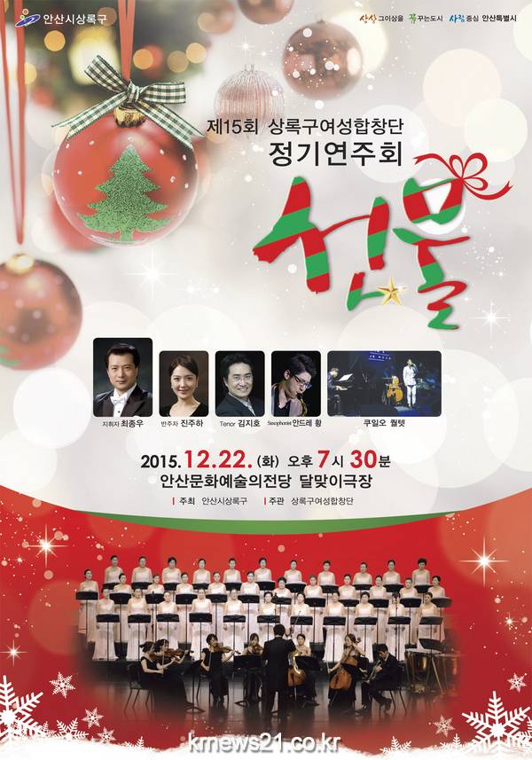 상록구 여성합창단은 오는 12월 22일 오후 7시 30분 안산문화예술의전당 달맞이극장에서 제15회 상록구여성합창단 정기연주회를 개최한다.