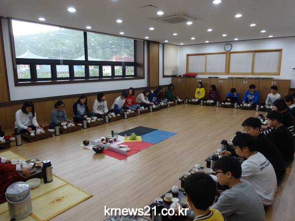 부산 동천고 명상동아리 학생 및 교직원 50여명이 21일(월) 오전9시부터 오후5시까지 명상을 통한 스트레스 조절법 등 동명대(총장 설동근) 세계선센터의 힐링프로그램을 체험하며 인성을 키운다.