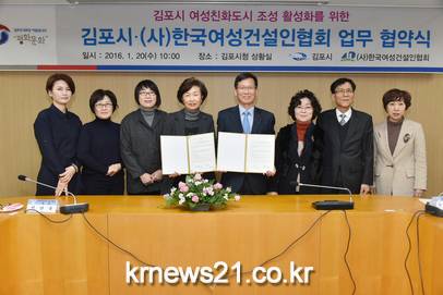 김포시는 (사)한국여성건설인협회와 여성친화도시 조성 활성화를 위한 업무협약을 지난 20일 김포시청 상황실에서 체결했다.