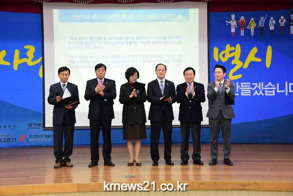 안산시(시장 제종길)는 2월 4일 시청 대회의실에서 경기도지사, 안산시의회 의장, 경기도의회 의장, 안산 교육지원청 교육장, 안산상공회의소 회장, 산업단지본부장, 종교계, 시민단체, 지역 유관기관 및 단체, 주민대표 등 150여명이 참가한 가운데「안산 에너지 비전 2030」선포식을 개최했다.