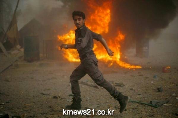 공습을 피하는 구조자