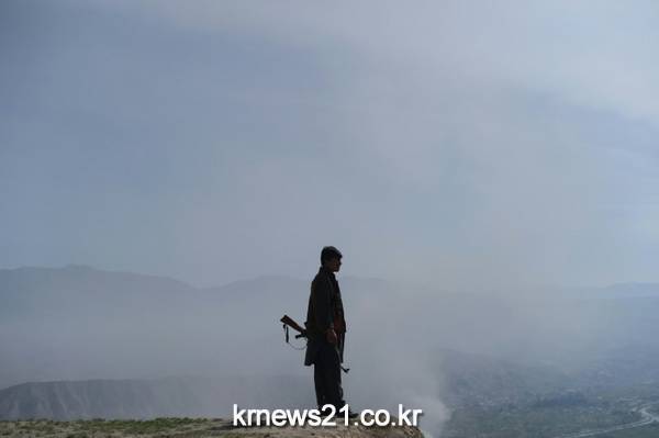 아프간 군인이 아프가니스탄 북동부 바그란 지역에서 경비를 서고 있다.