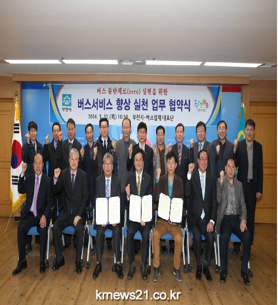 부천시는 관내 버스운수업체와 31일 시청 만남실에서 버스 불만제로(ZERO) 실현을 위한 업무협약을 맺었다.