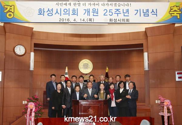 화성시의회는 박종선 의장을 비롯한 18명의 의원들과 채인석 시장 및 집행부 간부 공무원들이 참석한 가운데 4월 14일 의회 본회의장에서 의회개원 제25주년 기념행사를 열었다.