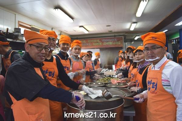 이날 행사에는 임직원 45명이 참여해 무의탁 노인과 노숙인 약 400여명의 점심식사를 위해 이른 아침부터 재료준비와 배식, 설거지 등으로 구슬땀을 흘렸다.