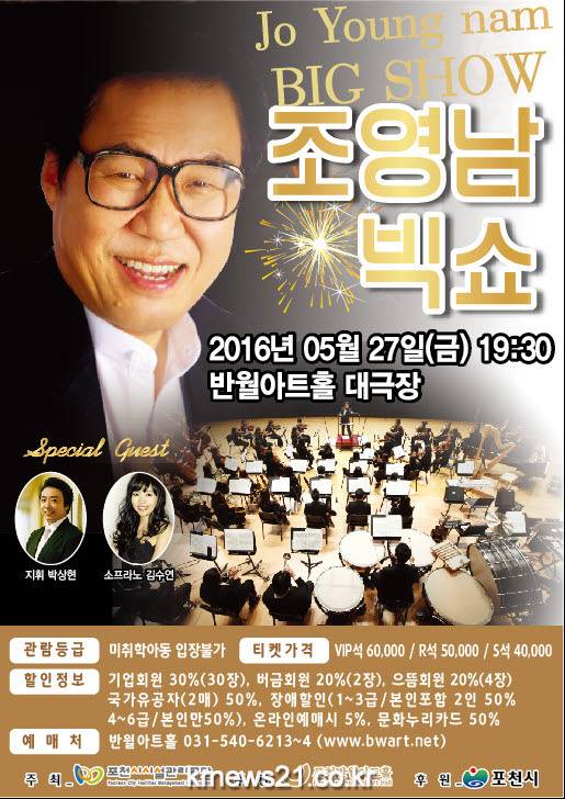 포천시시설관리공단(이사장 함중식) 반월아트홀에서는 2016년 가정의 달 콘서트 “조영남빅쇼”가 오는 5월 27일(금) 저녁 7시30분에 대극장에서 열린다.