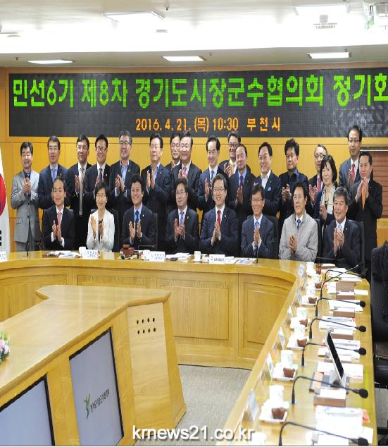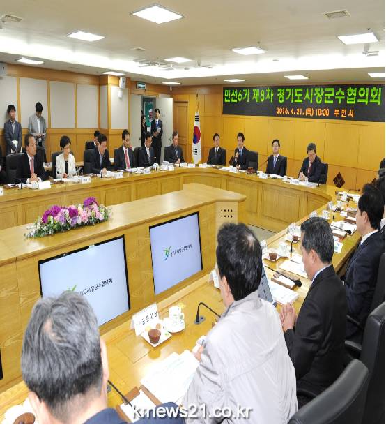 경기도시장군수협의회(회장 염태영 수원시장)는 21일 부천시청 창의실에서 민선6기 제8차 정기회의를 갖고 당면 현안사항과 개선방향에 대해 논의했다.