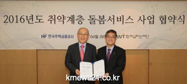 주택금융공사(HF,사장 김재천)는 재단법인 함께일하는재단(이사장 송월주)과 2016년 ‘취약계층 돌봄서비스’ 사업 협약을 체결했다고 29일 밝혔다.