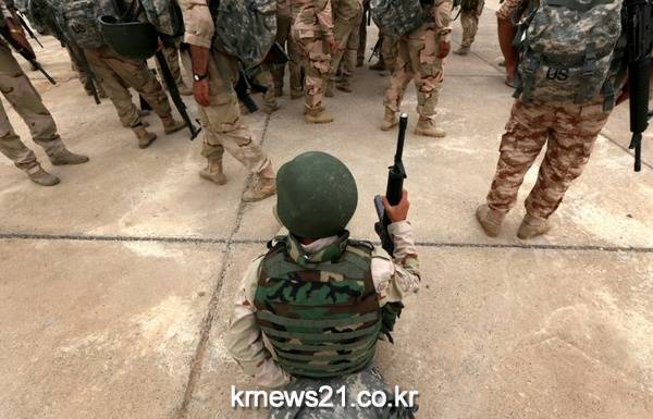 이라크 쿠르디스탄의 민병대인 페시메르가의 입영식. 페시메르가는 '죽음 앞의 그들'이란 뜻으로 1920년대 초 쿠르드족 독립운동 때 결성되었으며 친미적인 성향을 보인다.