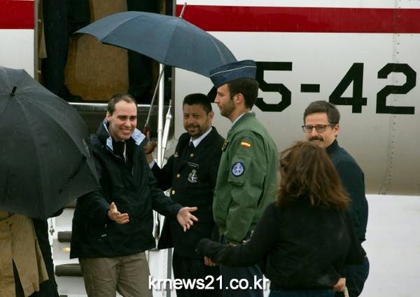 2015년 여름 IS 시아파 민병대에게 납치됐던 3명의 스페인 기자들이 풀려났다. 마드리드 공항에서 그를 환영하고 있다.