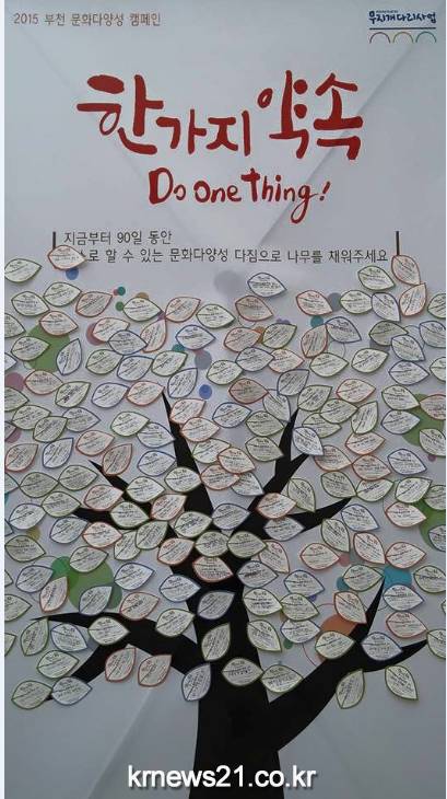 올해 세계문화다양성주간의 모토는 ‘문화다양성, 하자(DO CuIturaI Diversity)’다. 문화다양성 인식을 통한 발상의 전환이 지난해 목표였다면, 올해는 부천 시민들이 문화다양성을 실생활에서 실천할 수 있도록 독려하는 활동에 집중하고, 작년 한 해 좋은 반응을 불러일으킨 ‘한 가지 약속’ (DO One Thing)’ 캠페인은 올해에도 진행되며, 주간 행사장 곳곳에 다짐나무를 설치하여 시민들이 캠페인에 참여하도록 할 예정이다.