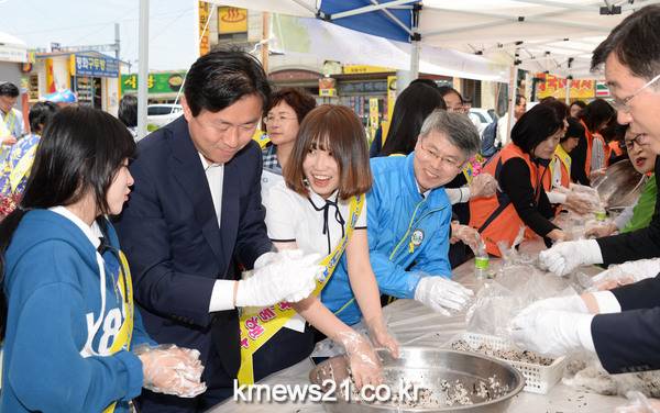 더민주 부산·경남지역 당선인 7명은 시민들과 주먹밥을 함께 만들어 광주송정역을 오가는 시민·승객들에게 나눠주며 영호남의 화합과 단결로 5월 정신을 계승할 것을 다짐했다.